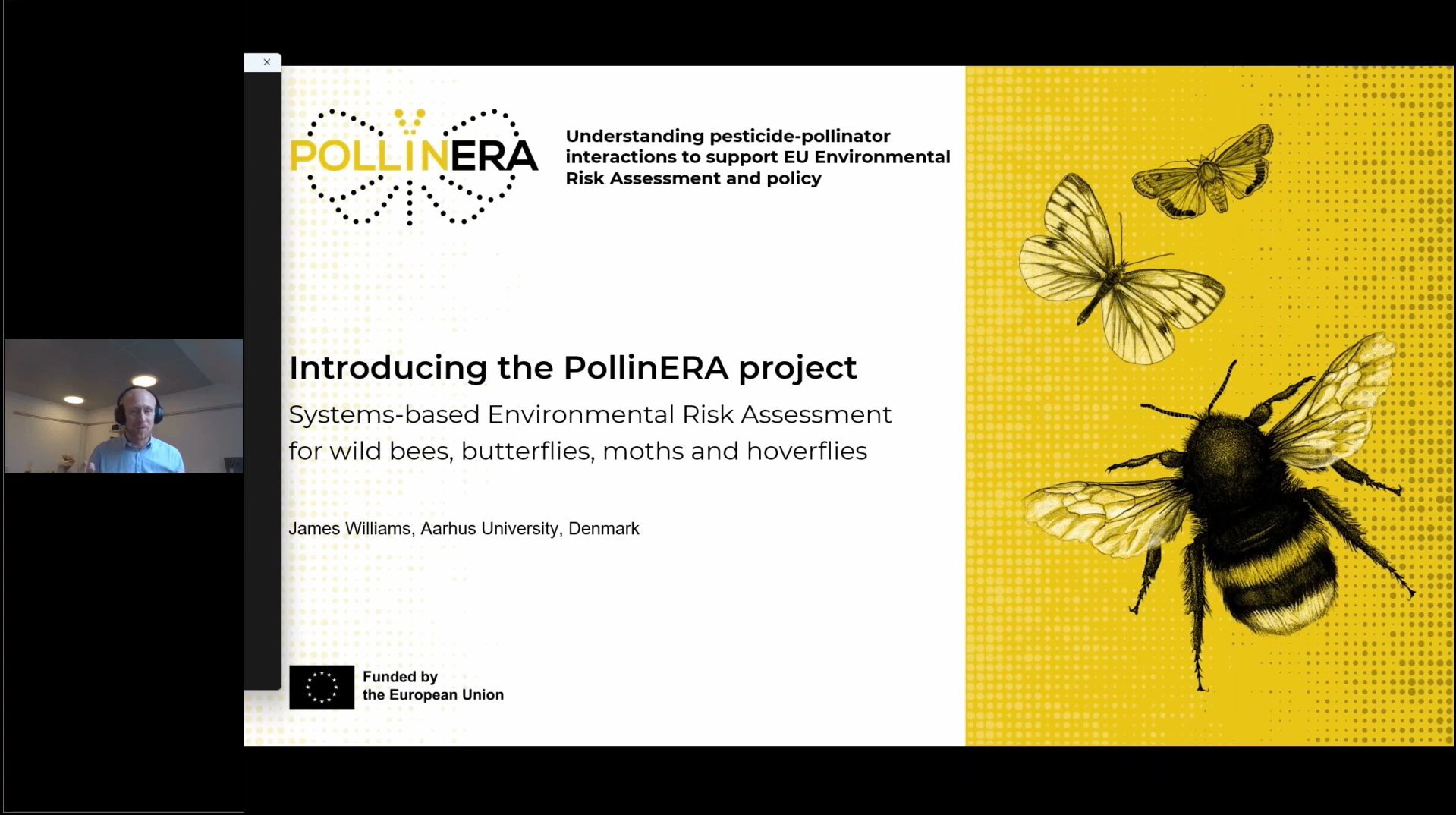 A screenshot of James H. Williams presenting the PollinERA project during the webinar ‘Collaboration Opportunities for Environmental Risk Assessment’