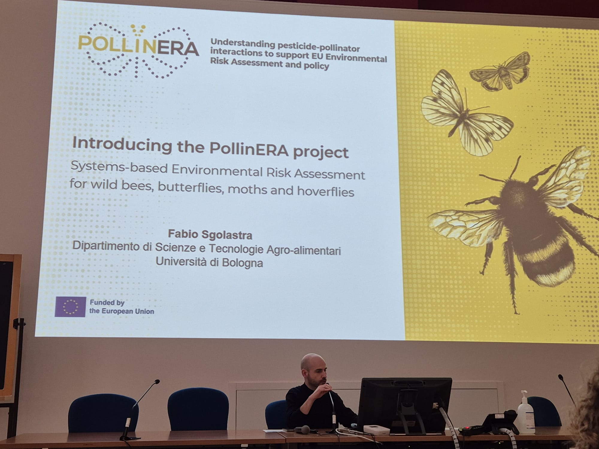During the event, project partner Fabio Sgolastra from the University of Bologna presented the PollinERA project in person, highlighting it as an example of a European initiative addressing pollinator conservation. The presentation introduced PollinERA’s approach to Environmental Risk Assessment (ERA) and discussed how pollinator risks are currently assessed at the EU level, as well as opportunities to improve these processes.