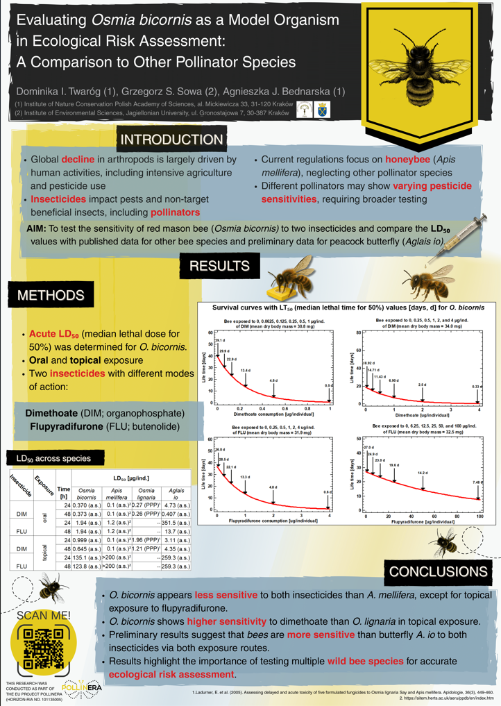 A poster presentation titled Evaluating Osmia bicornis as a Model Organism in Ecological Risk Assessment: A Comparison to Other Pollinator Species was delivered, showing results generated within the Work Package (WP) 1 Pollinator exposure and sensitivity of PollinERA.